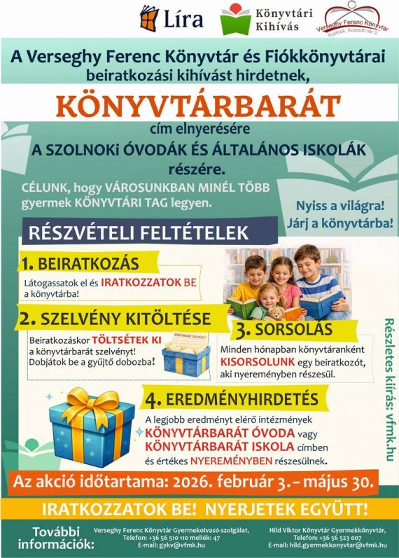 Mészáros Géza: Könyvtárbarát óvodákat és iskolákat keresnek Szolnokon (szoljon.hu) Horváth Zsolt: Melyik iskola lesz Szolnok könyvtárbarát bajnoka? (Szol24.hu)