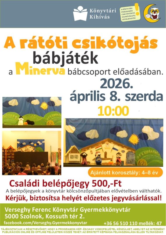 A belépőjegyek elővételben válthatók meg a könyvtár kölcsönzőpultjában