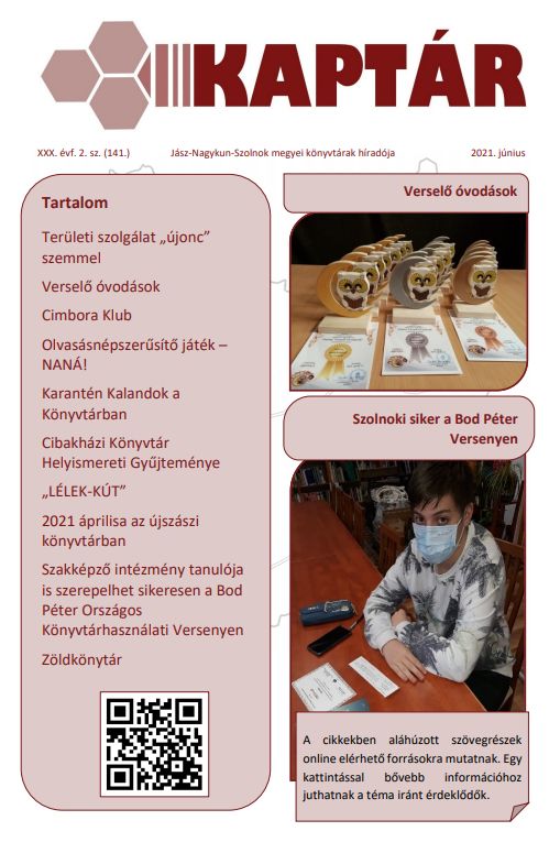 Tóth Karolina A gyermekrészleg elhivatott könyvtárosa. Nagy lelkesedéssel végzi nemcsak a gyermekcsoportokkal kapcsolatos munkáját, hanem más, kompetenciájának megfelelő feladatokat. Kiállításokat szervez, vetélkedőket bonyolít le online és hagyományos formában is. (Csukás családi mini kvíz, Fekete István 100) A Gyermekkönyvtár facebook-oldalának minőségi arculata az ő munkáját dicséri. A foglalkozások precíz fotódokumentációját ő tartja kézben. Mintaprogram kidolgozójaként (Ókorba…