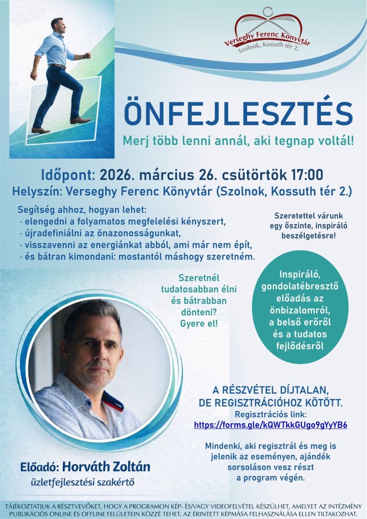 Home Események - Verseghy Ferenc Könyvtár és Közművelődési Intézmény Felnőtt programok Verseghy Könyvtár ÖNFEJLESZTÉS – MERJ TÖBB LENNI ANNÁL, AKI TEGNAP VOLTÁL!