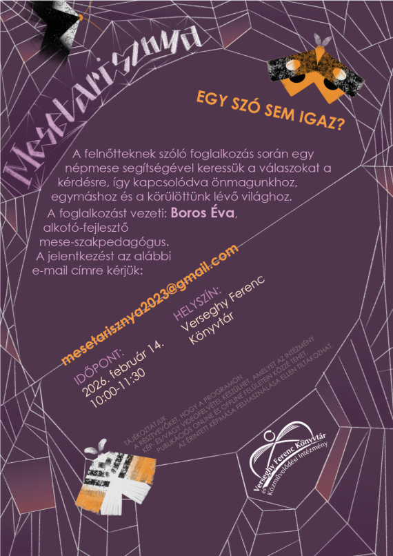 Mesetarisznya Lélekfrissítő barangolás a népmesék világában. A foglalkozást vezeti: Boros Éva, alkotó-fejlesztő mese-szakpedagógus Jelentkezés: mesetarisznya2023@gmail.com Helyszín: Klubterem