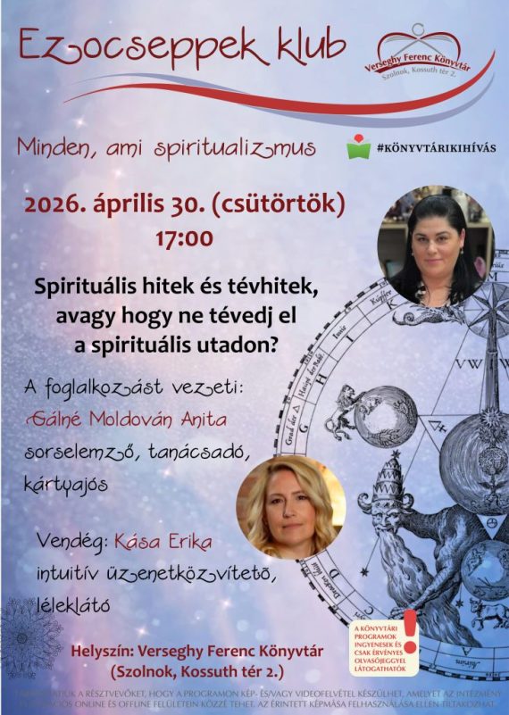Középpontban a nő Új férfi, új nő, új fajta kapcsolódás – vendégünk: Soma Mamagésa Időpont: 2026. március 5. 18 óra Helyszín: II. emeleti rendezvénytér Belépőjegy: 3000 Ft A belépőjegy megvásárolható a Verseghy Könyvtár kölcsönzőpultjában (Szolnok, Kossuth tér 2.)