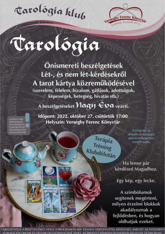 A Tarológia klubdélután várja az érdeklődőket. Nagy Éva avatja be Önöket a tarológia világába.