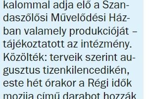 Az Új Néplap 2022. július 30-i számában ajánlott az olvasók figyelmébe a Régi idők mozija…